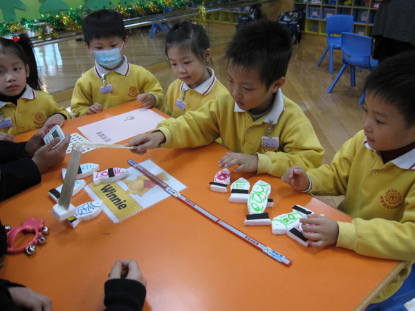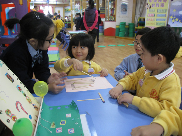 與本園高班學生進行「昔日玩具」攤位遊戲活動